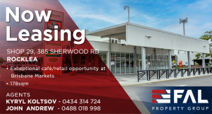 FAL Property Group is proud to present for lease Shop 29, 385 Sherwood Rd, Rocklea. This café is located in the vibrant business community of