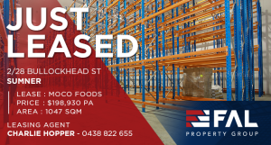 FAL Property Group is pleased to announce the successful of lease 2/28 Bullockhead Street, Sumner. This results continues to reinforce the strong Leasing marketing in
