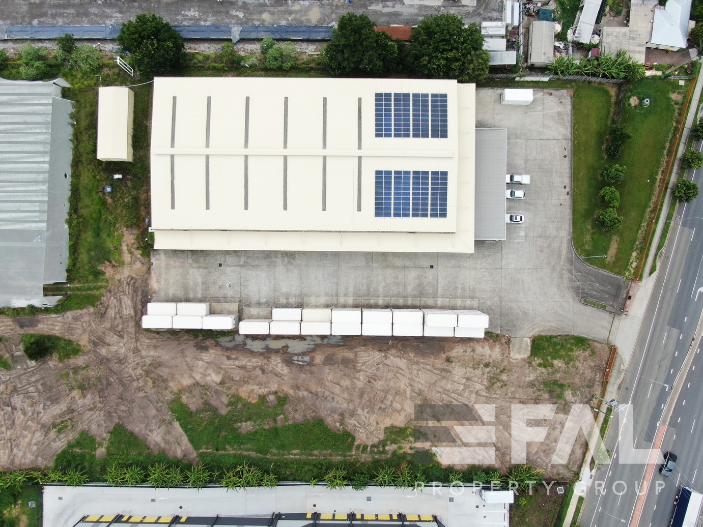 – Side access to warehouse via 4 x extra wide roller doors